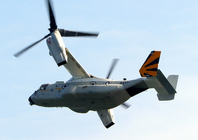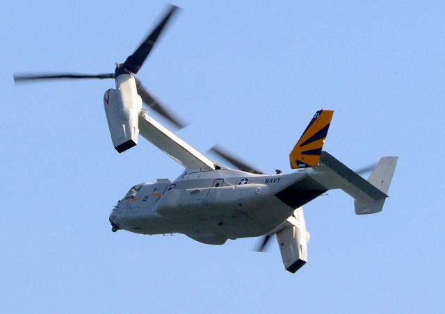 米海軍艦載機 CMV-22 オスプレイ、21-9446番機(カールビンソン搭載の機)が離陸 |