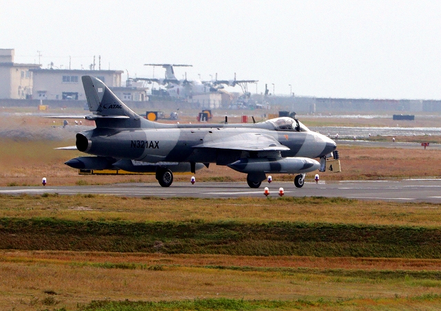 米海軍チャーター機 ホーカー・ハンター MK58 訓練支援機、N322AXが着陸 13時52分に離陸した機。1時間08分の飛行でした。 |