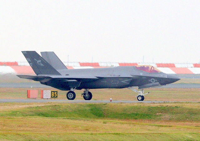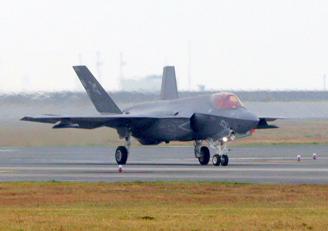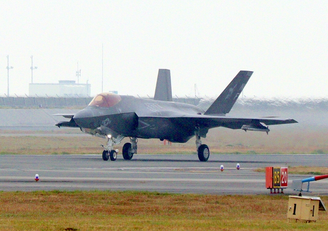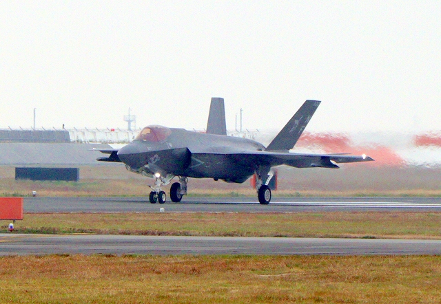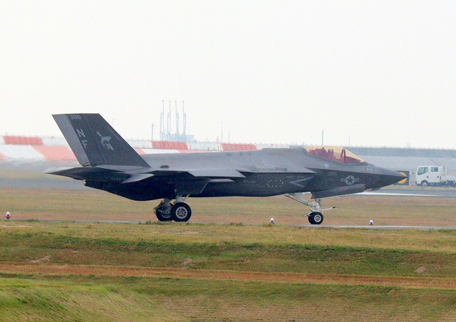 米海軍艦載機 F-35C ライトニングⅡ 戦闘機(岩国基地)、NF、300番機が着陸 |