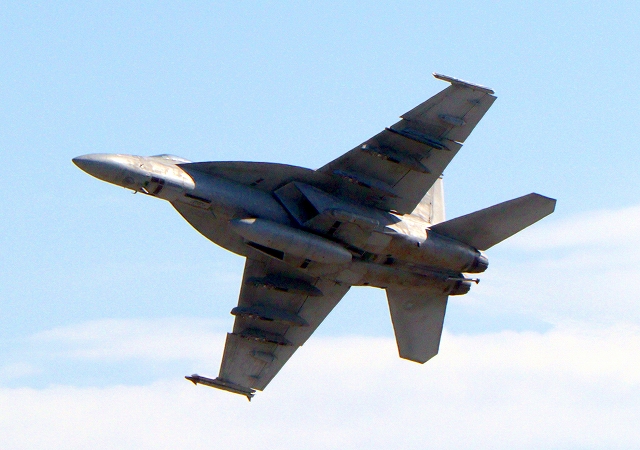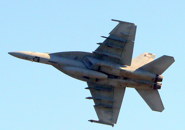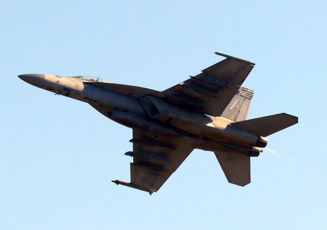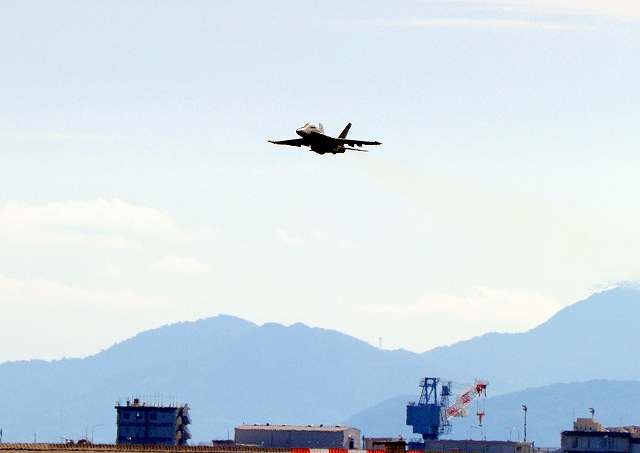 米海軍艦載機 F/A-18E スーパーホーネット 戦闘攻撃機(岩国基地)、NF、201番機が離陸 |