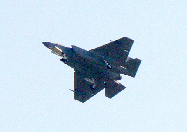 米海軍艦載機 F-35C ライトニングⅡ 戦闘機(岩国基地)、NF、306番機が旋回 |
