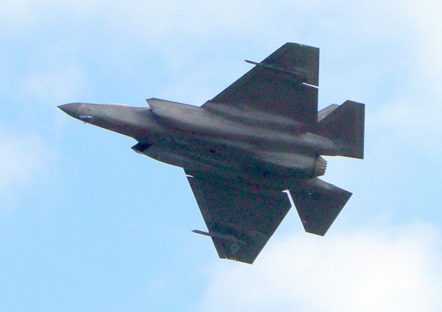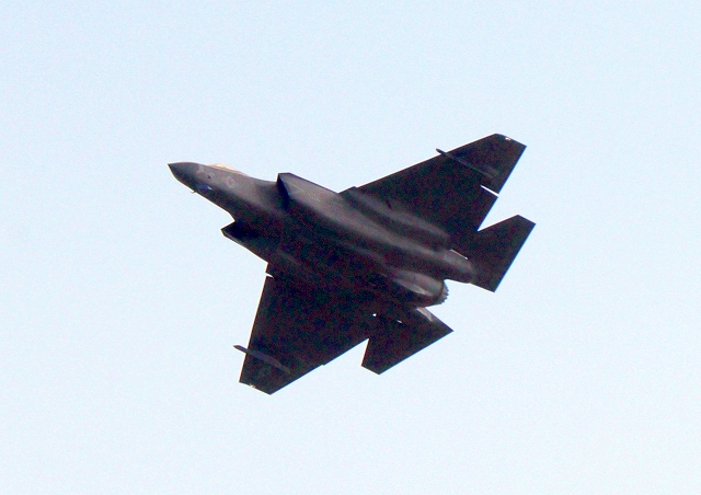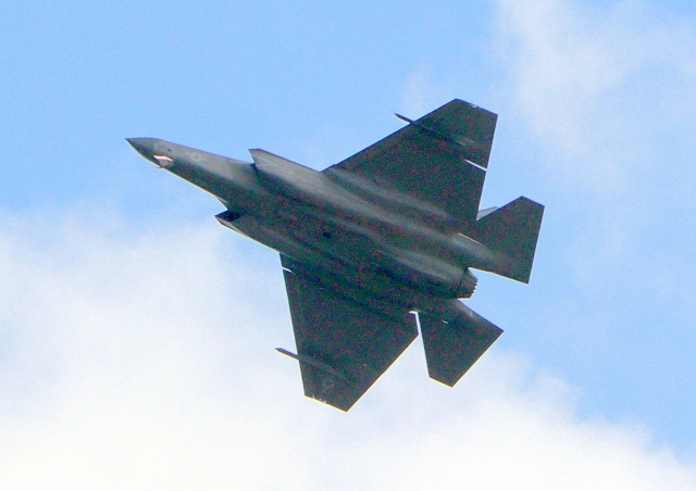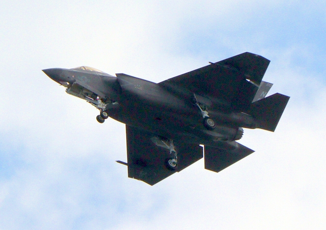 米海軍艦載機 F-35C ライトニングⅡ 戦闘機(岩国基地)、NF、310番機が旋回 |