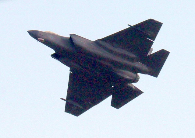 米海軍艦載機 F-35C ライトニングⅡ 戦闘機(岩国基地)、NF、313番機が帰還、旋回 |