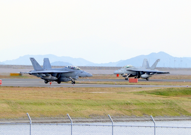 米海軍艦載機 F/A-18F スーパーホーネット 戦闘攻撃機(岩国基地)、NF、104番機、105番機 |