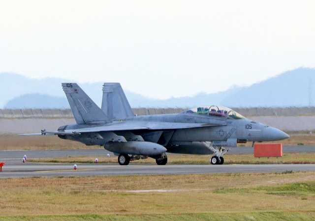 米海軍艦載機 F/A-18F スーパーホーネット 戦闘攻撃機(岩国基地)、NF、105番機 |