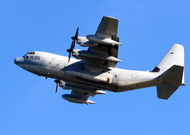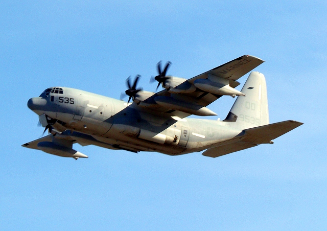 米海兵隊 KC-130J 空中給油機 スーパーハーキュリーズ(岩国基地)、QD 9535番機 |