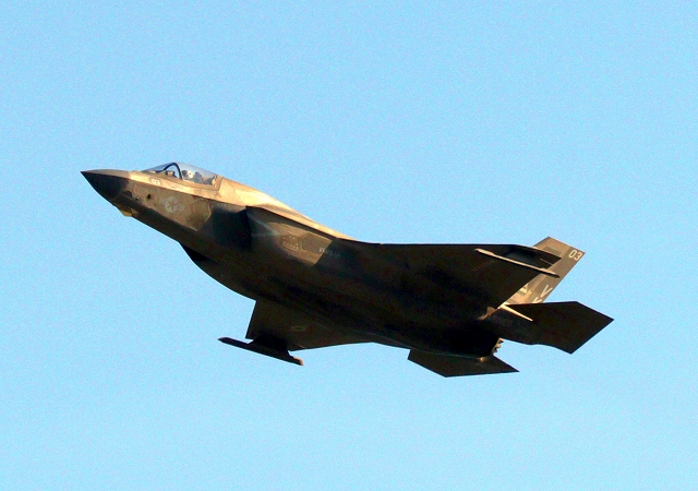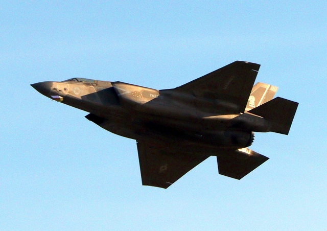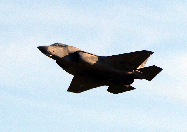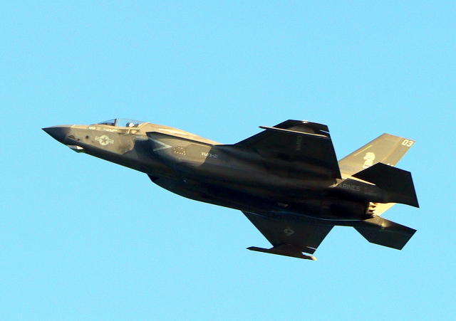 米海兵隊 F-35B ライトニングⅡ 戦闘機(岩国基地)、VK、03番機が離陸 |