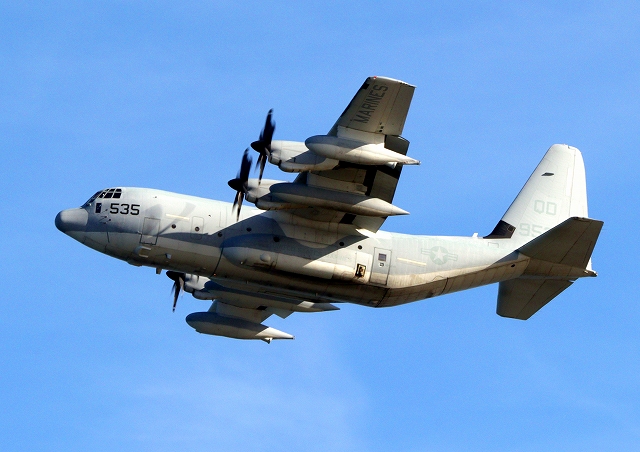 米海兵隊 KC-130J 空中給油機 スーパーハーキュリーズ(岩国基地)、QD 9535番機 |