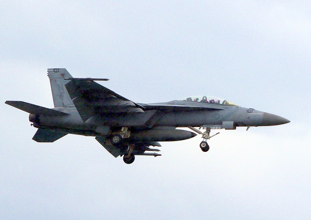 米海軍艦載機 F/A-18F スーパーホーネット 戦闘攻撃機(岩国基地)、NF、107番機 |