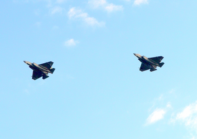 米海軍艦載機 F-35C ライトニングⅡ 戦闘機(岩国基地)、NF、300番機、313番機が2機編隊で帰還 |