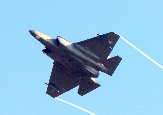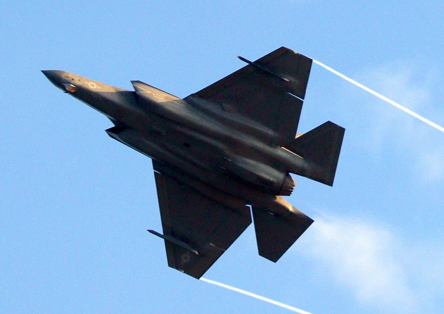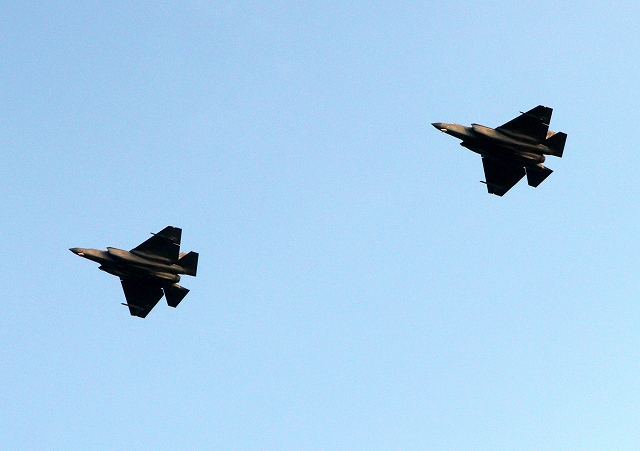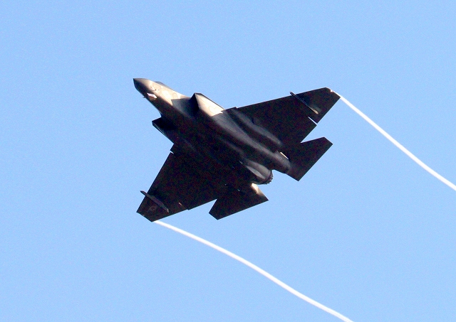 米海軍艦載機 F-35C ライトニングⅡ 戦闘機(岩国基地)、NF、300番機が旋回 |