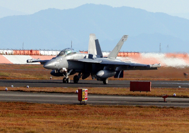 米海軍艦載機 EA-18G グラウラー 電子戦戦闘攻撃機(岩国基地)、NF、501番機が着陸 |