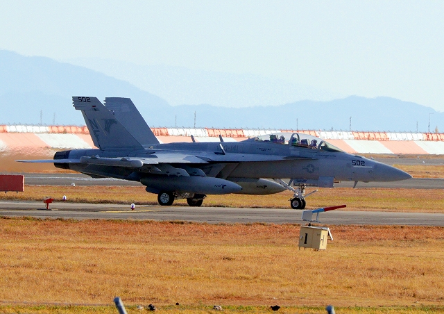 米海軍艦載機 EA-18G グラウラー 電子戦戦闘攻撃機(岩国基地)、NF、501番機 13時53分に離陸した機。1時間07分の飛行でした。 |