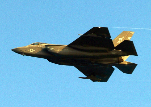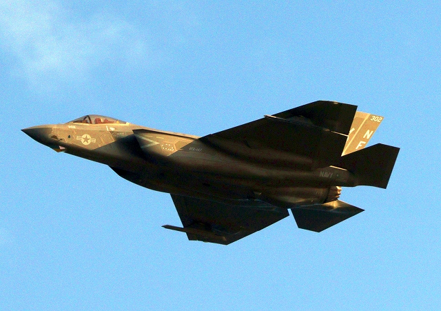 米海軍艦載機 F-35C ライトニングⅡ 戦闘機(岩国基地)、NF、302番機が旋回 |