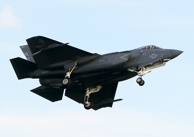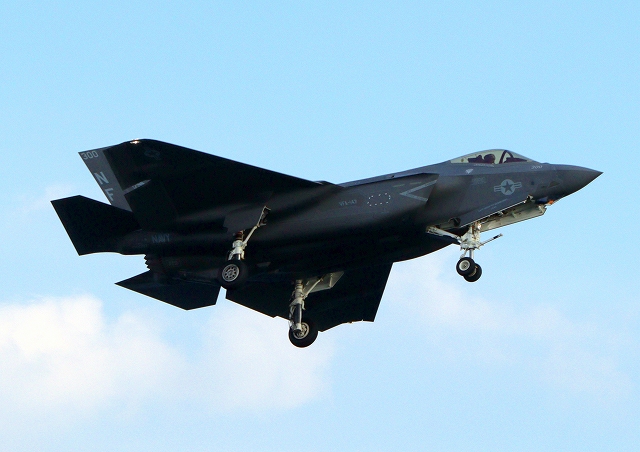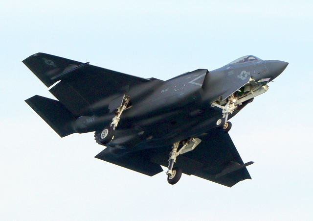 米海軍艦載機 F-35C ライトニングⅡ 戦闘機(岩国基地)、NF、314番機が旋回 |