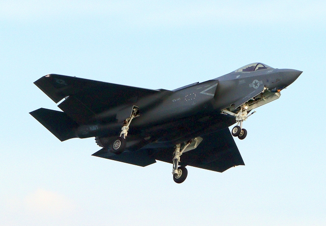 米海軍艦載機 F-35C ライトニングⅡ 戦闘機(岩国基地)、NF、300番機が着陸 |