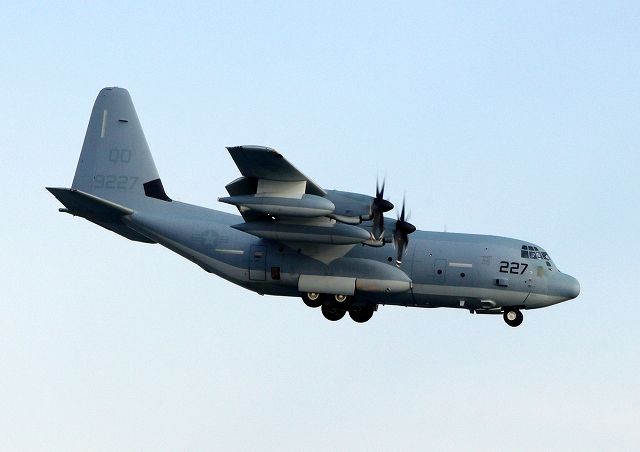 米海兵隊 KC-130J 空中給油機 スーパーハーキュリーズ(岩国基地)、QD 9227番機が帰還 |