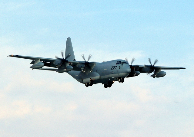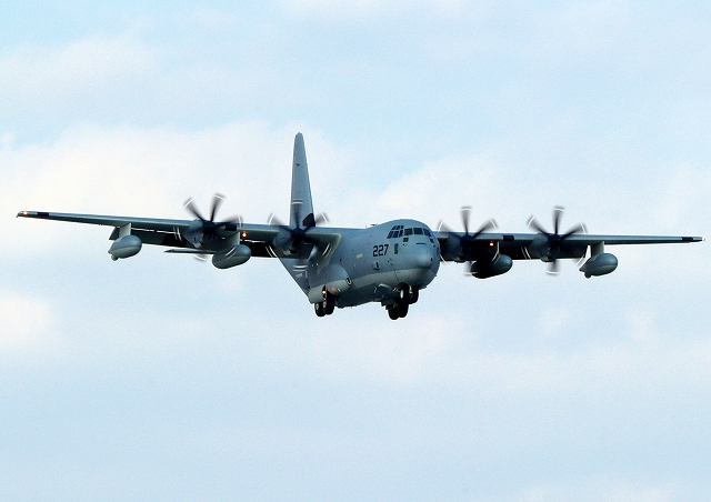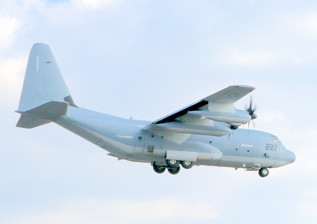 米海兵隊 KC-130J 空中給油機 スーパーハーキュリーズ(岩国基地)、QD 9227番機 |
