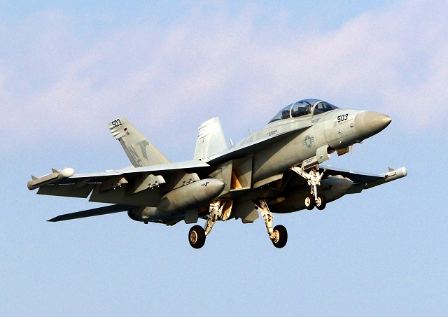 グラウラー 電子戦戦闘攻撃機(岩国基地)、NF、503番機が着陸 |