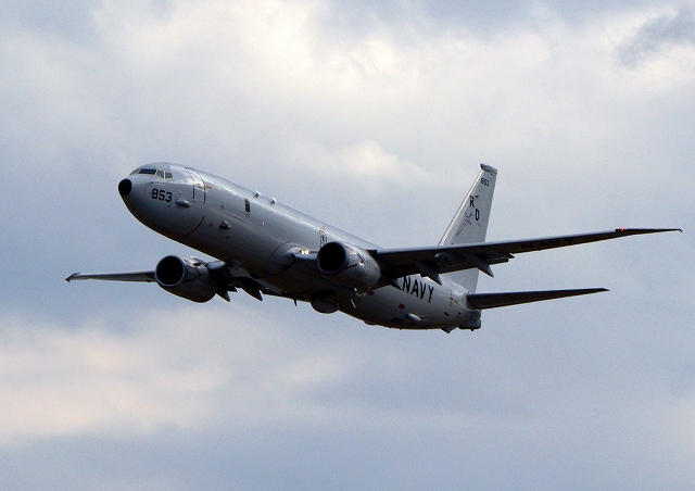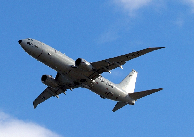米海軍 P-8A 海上哨戒機 ポセイドン(嘉手納基地、三沢基地)、RD、853番機が旋回 |
