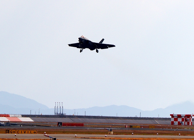 米海軍艦載機 F-35C ライトニングⅡ 戦闘機(岩国基地)、NF、311番機が離陸 |
