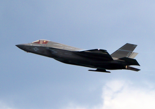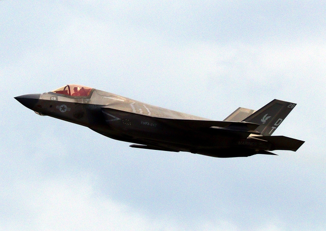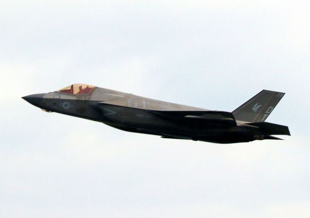 米海兵隊 F-35B ライトニングⅡ 戦闘機(岩国基地)、DT、28番機が離陸 |