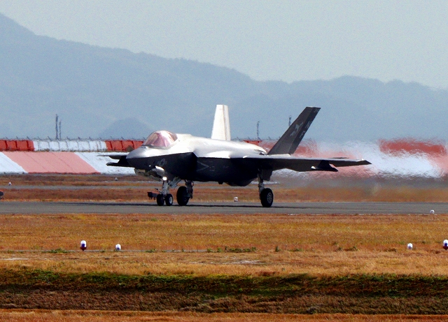 米海軍艦載機 F-35C ライトニングⅡ 戦闘機(岩国基地)、NF、311番機が着陸 13時02分に離陸した機。41分間の飛行でした。 |