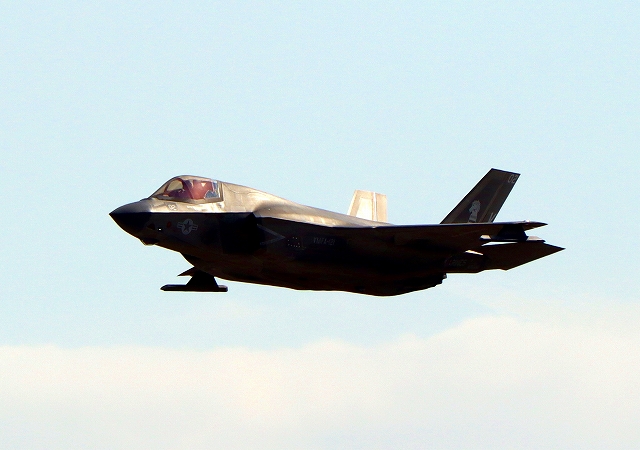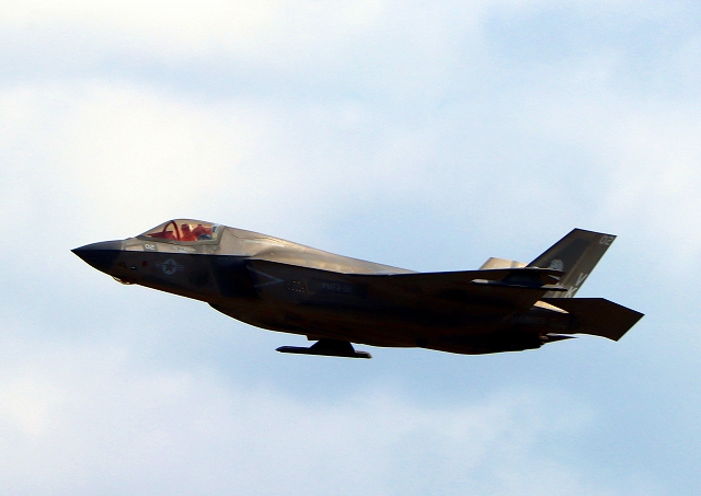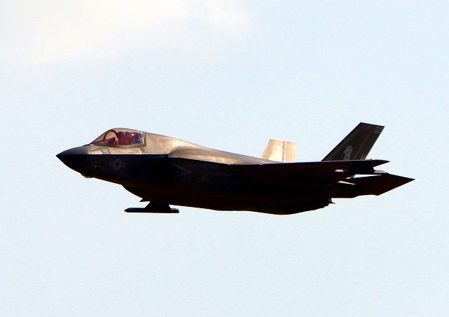 米海兵隊 F-35B ライトニングⅡ 戦闘機(岩国基地)、VK、02番機が離陸 |