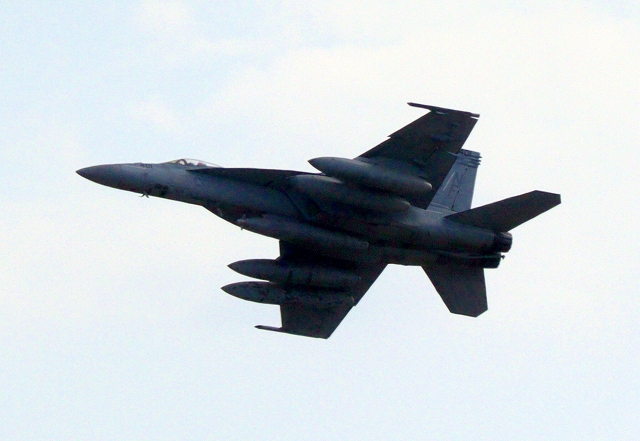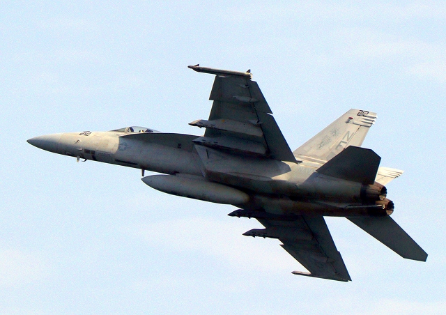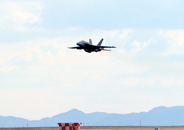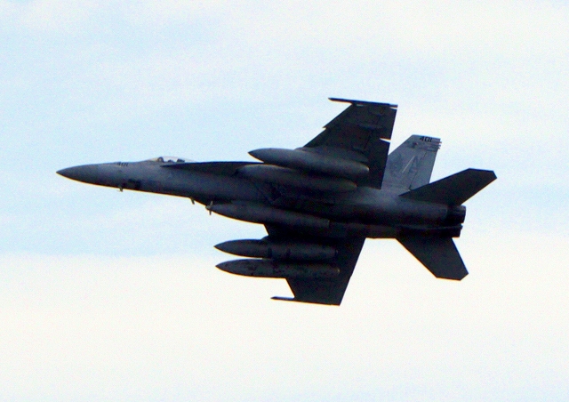 米海軍艦載機 F/A-18E スーパーホーネット 戦闘攻撃機(岩国基地)、NF、212番機が離陸 |