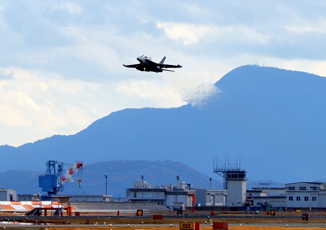 米海軍艦載機 EA-18G グラウラー 電子戦戦闘攻撃機(岩国基地)、NF、507番機が離陸 |