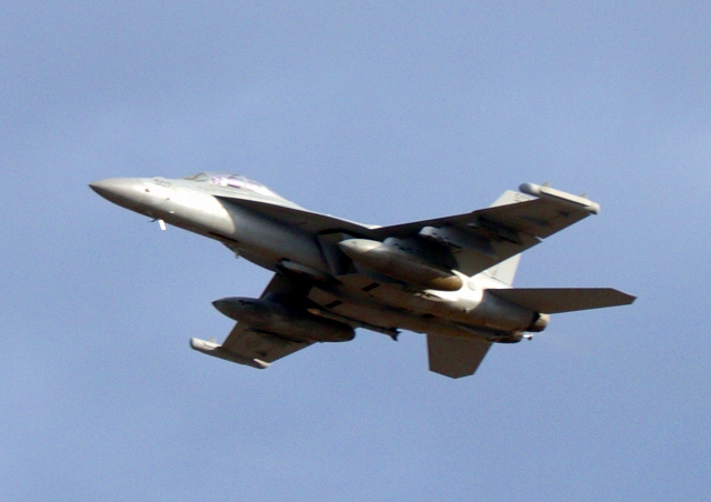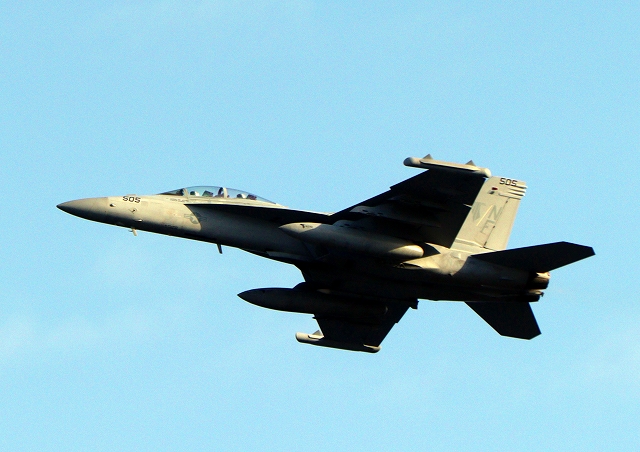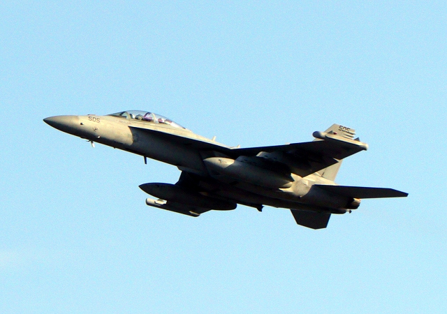米海軍艦載機 EA-18G グラウラー 電子戦戦闘攻撃機(岩国基地)、NF、505番機が離陸 |