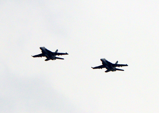 3797-1、2024年12月13日(金)スーパーホーネット 戦闘攻撃機 E NF 400番機、405番機 2機編隊で帰還、着陸(1)~(10)