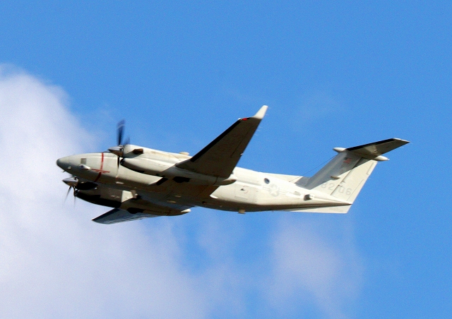 米海兵隊 UC-12W ヒューロン 軽輸送機(岩国基地)、8206番機が離陸 |