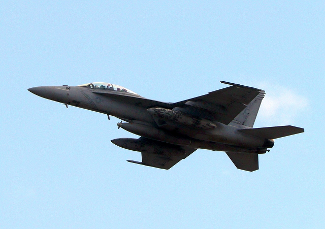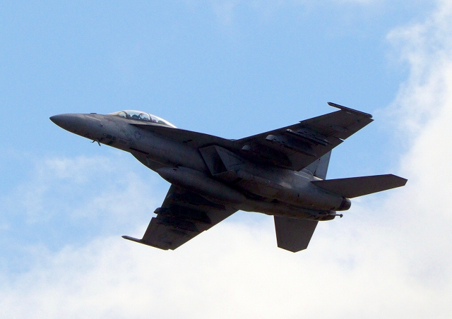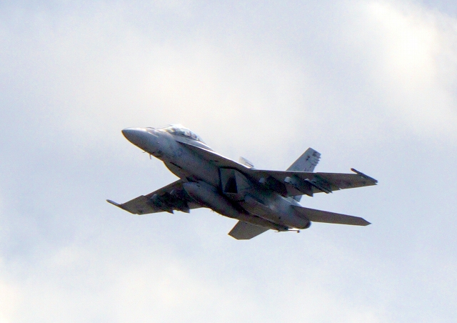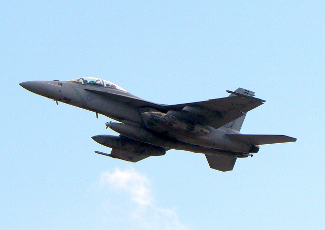 米海軍艦載機 F/A-18F スーパーホーネット 戦闘攻撃機(岩国基地)、NF、114番機が離陸 |