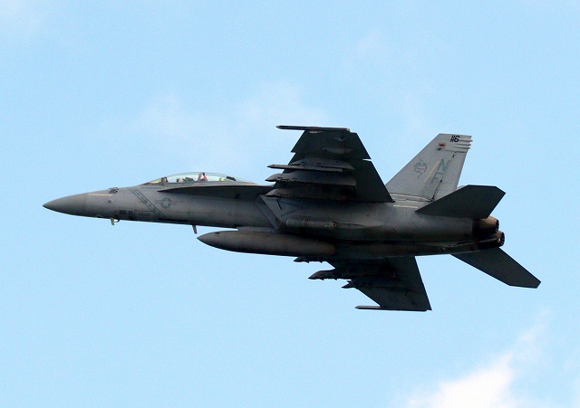 米海軍艦載機 F/A-18F スーパーホーネット 戦闘攻撃機(岩国基地)、NF、116番機が離陸 |