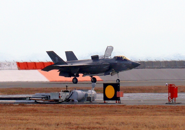 米海兵隊 F-35B ライトニングⅡ 戦闘機(岩国基地)、VK、02番機が着陸 |