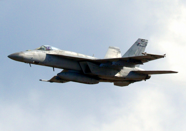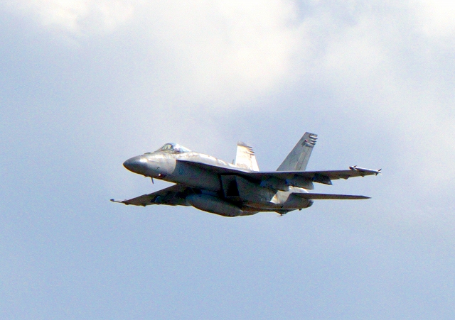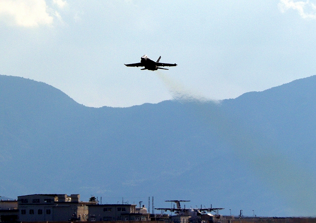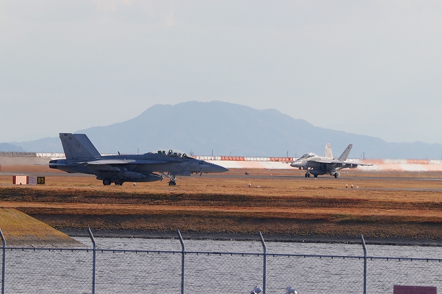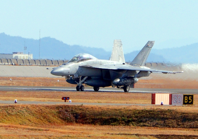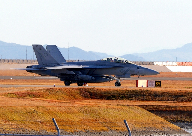 米海軍艦載機 F/A-18E スーパーホーネット 戦闘攻撃機(岩国基地)、NF、410番機が離陸 |