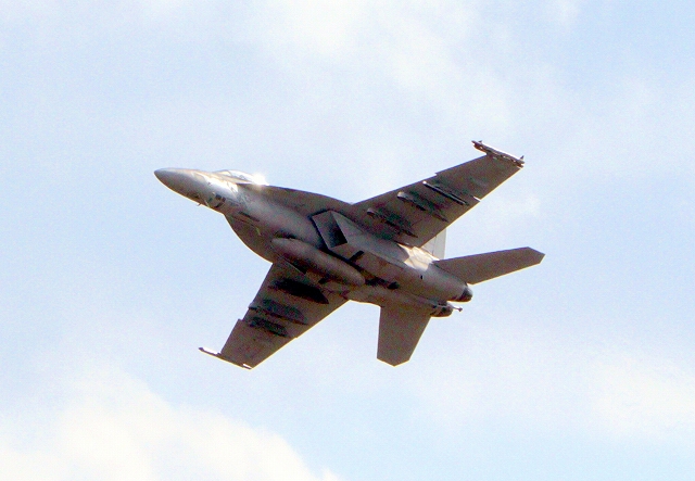 米海軍艦載機 F/A-18F スーパーホーネット 戦闘攻撃機(岩国基地)、NF、100番機が離陸 |