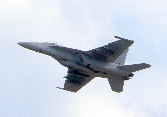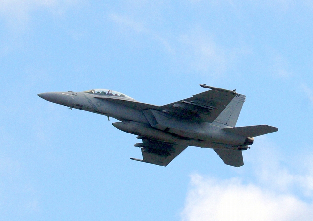 米海軍艦載機 F/A-18F スーパーホーネット 戦闘攻撃機(岩国基地)、NF、102番機が離陸 |