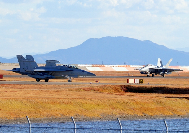 米海軍艦載機 EA-18G グラウラー 電子戦戦闘攻撃機(岩国基地)、NF、504番機、507番機が帰還 |