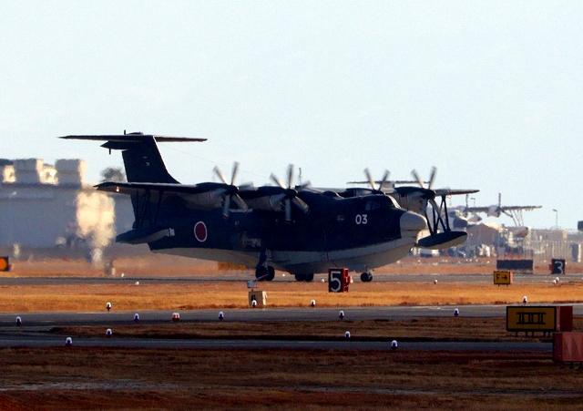 次に可能性があるのが、海上自衛隊、US-2救難飛行艇。正月でも離着水訓練、やります。
