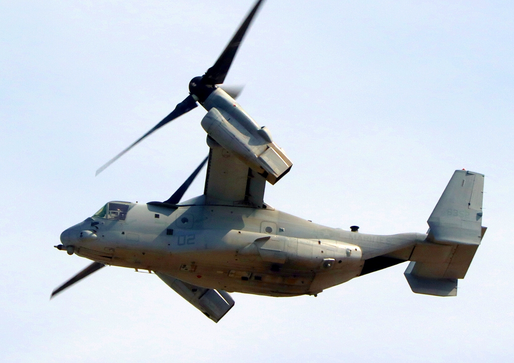 米海兵隊 MV-22B オスプレイ(普天間基地)、8352-02番機が離陸