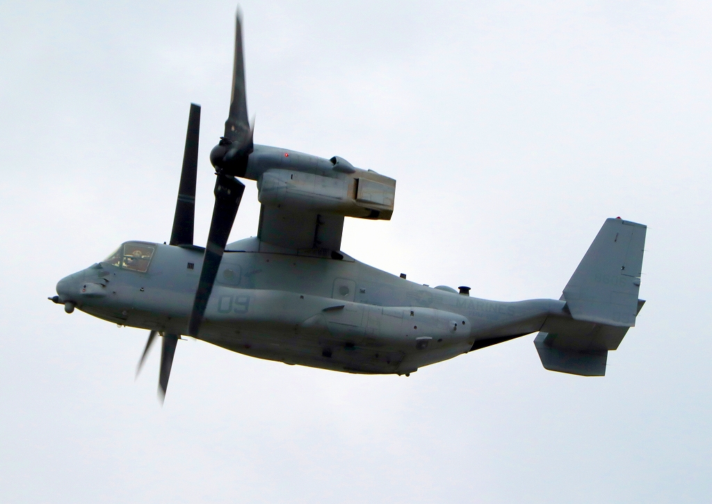 2024年3月28日(金)米海兵隊 MV-22B オスプレイ(普天間基地)、09番機が離陸。13時18分に厚木基地から飛来した機。3月25日(火)15時01分、松本空港に緊急着陸した機です。