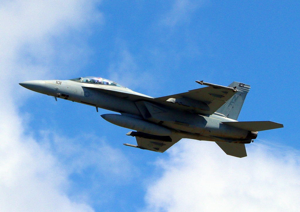 米海軍艦載機 F/A-18F スーパーホーネット 戦闘攻撃機(岩国基地)、NF、101番機が離陸