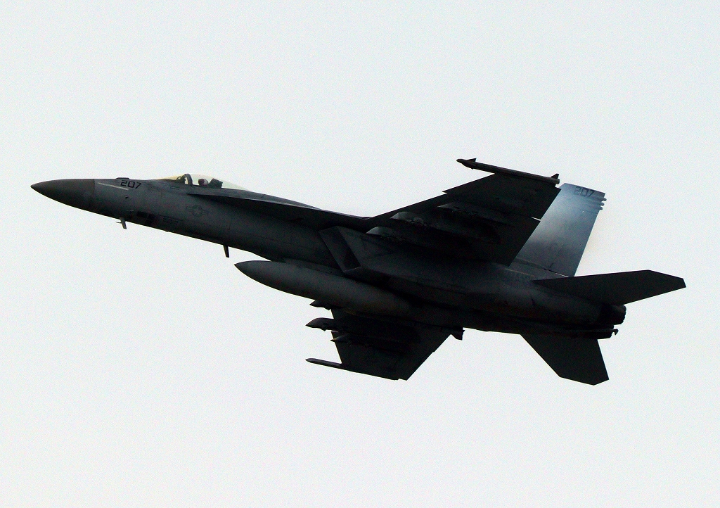米海軍艦載機 F/A-18E スーパーホーネット 戦闘攻撃機(岩国基地)、NF、207番機が離陸