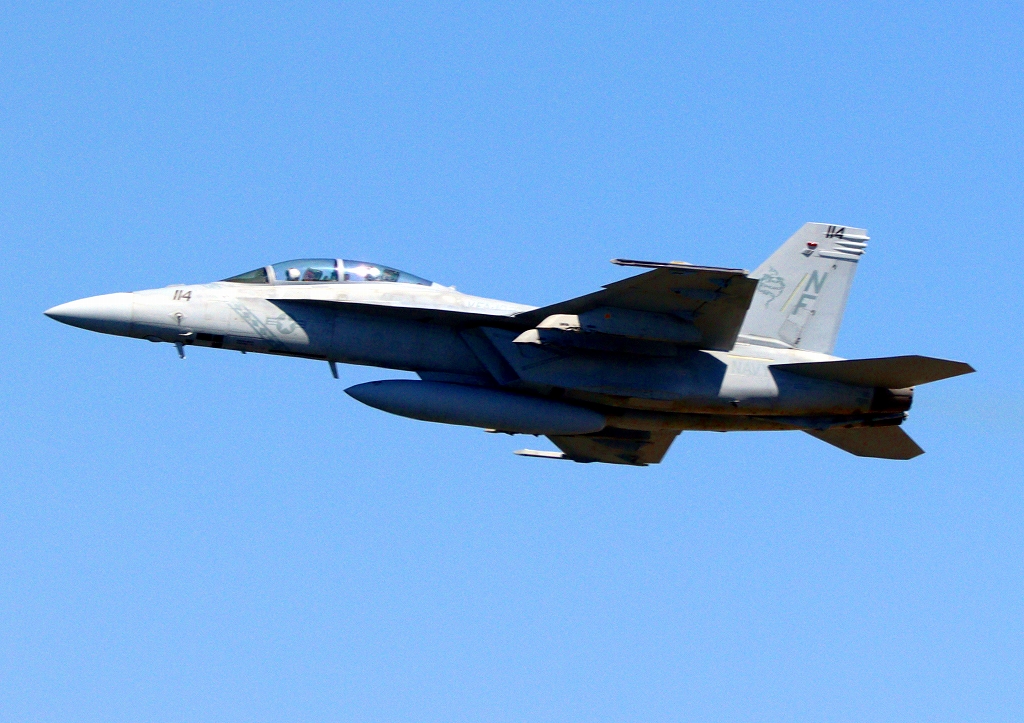 米海軍艦載機 F/A-18F スーパーホーネット 戦闘攻撃機(岩国基地)、NF、114番機が離陸