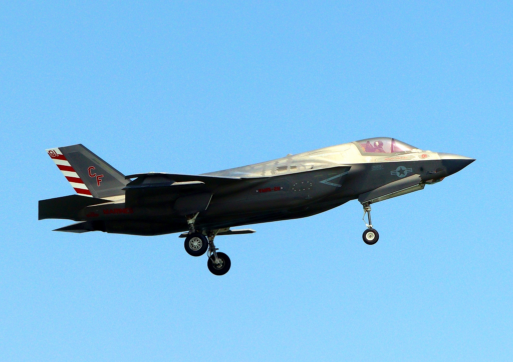 米海兵隊 F-35B ライトニングⅡ ステルス戦闘機(岩国基地)、CF、01番機が帰還、着陸