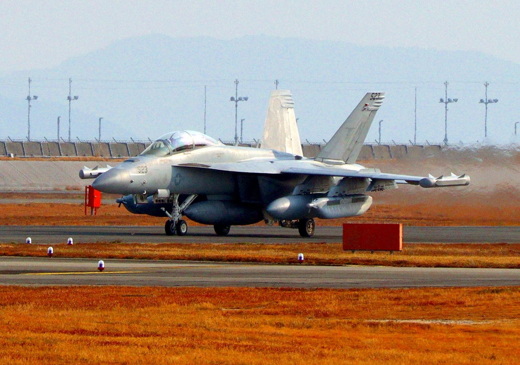 米海軍艦載機 EA-18G グラウラー 電子戦戦闘攻撃機(三沢基地)、NL、503番機が着陸