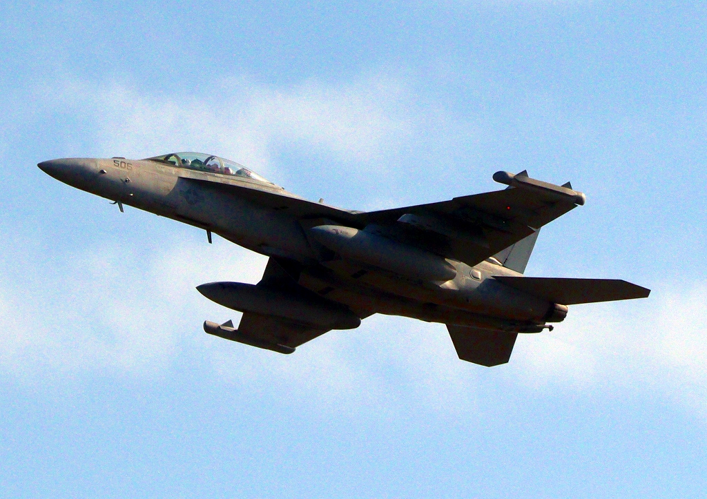 米海軍艦載機 EA-18G グラウラー 電子戦戦闘攻撃機(岩国基地)、NF、506番機が離陸
