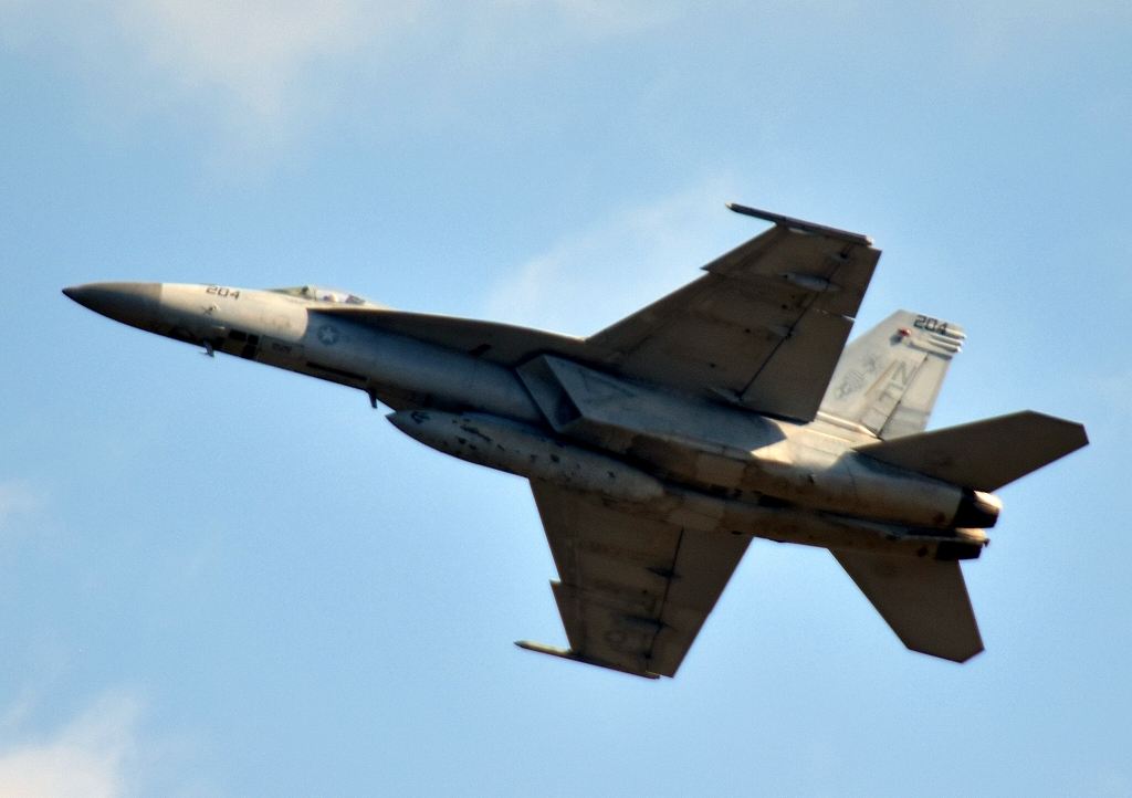 米海軍艦載機 F/A-18E スーパーホーネット 戦闘攻撃機(岩国基地)、NF、204番機が離陸